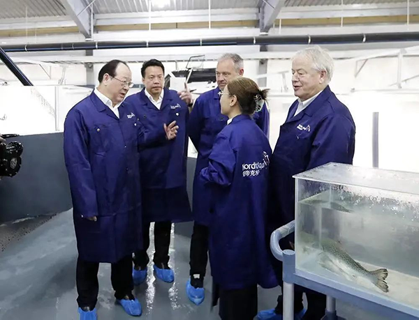 △彭佳學(xué)在北歐(中國(guó))鮭魚RAS陸基養(yǎng)殖基地調(diào)研 (圖片來源:寧波發(fā)布)